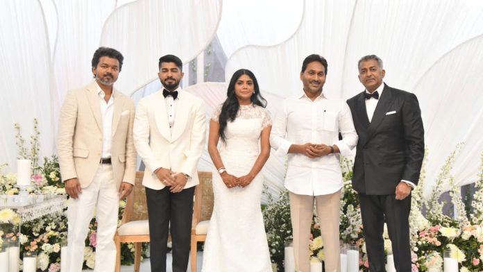 சென்னையில் நேற்று ஆந்திர முன்னாள் முதலமைச்சரும் ஒய்.எஸ்.ஆர் காங்கிரஸ் கட்சியின் தலைவருமான ஜெகன் மோகன் இல்லத் திருமண விழா நடந்தது. காலையில் இந்து முறைப்படி நடந்த திருமணத்தில் தமிழ்நாடு முதலமைச்சர் முதலமைச்சர் மு.க.ஸ்டாலின் உள்ளிட்ட பல முக்கிய அரசியல் பிரபலங்கள் கலந்துகொண்டனர்.